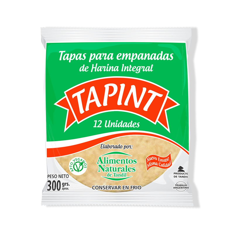 Inigualables y únicas Tapas para Empanadas de Harina Integral tipo criollas, margarina 100% vegetal, sal, agua.